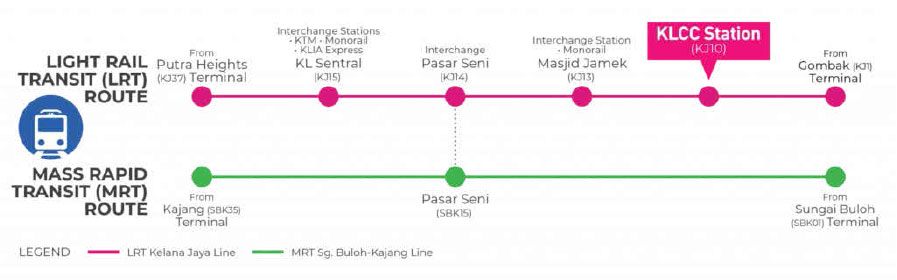 i) Pasar Seni Station and take the LRT interchange to KLCC Station.